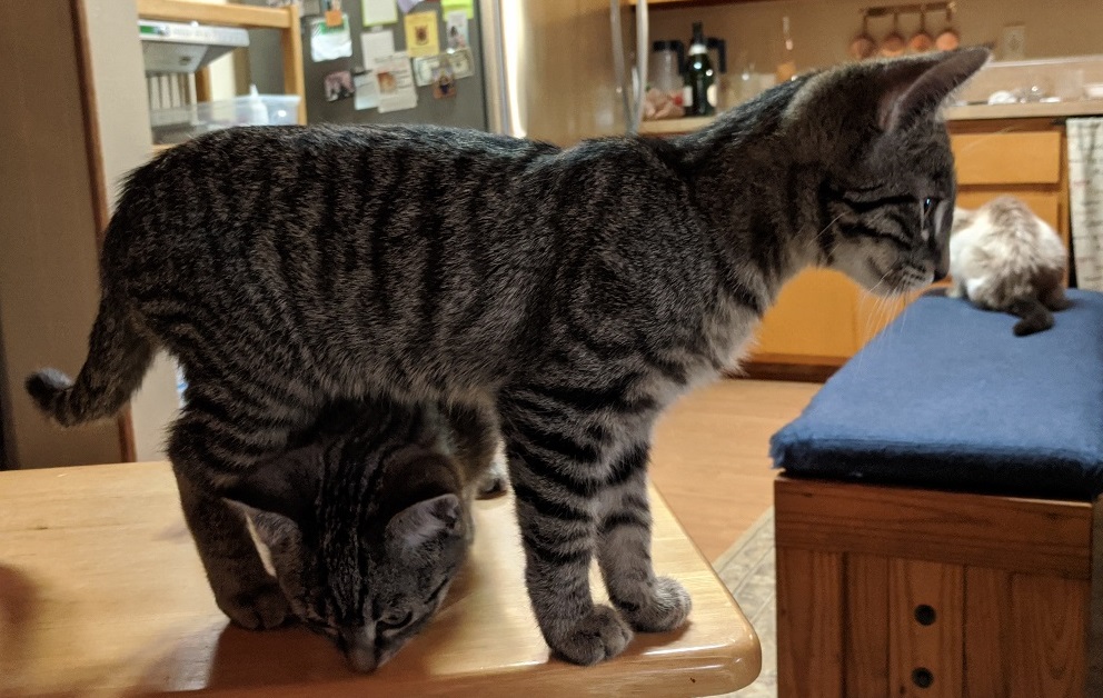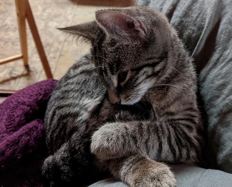 Their older cat has incredible markings — little grey tabby reminded me of Ziggy when I first got her at 2 months old. Great pics as usual!
