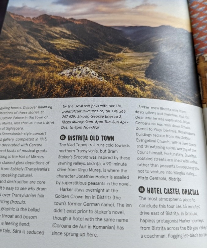 Two of my favorite books to peruse when being an armchair traveler are “Culture Trails” (Lonely Planet, 2017) and “Secret Journeys of a Lifetime” (National Geographic, 2011). Each book has beautiful photos plus marvelous descriptions of specific areas. The books easily evoke wanderlust dreams.