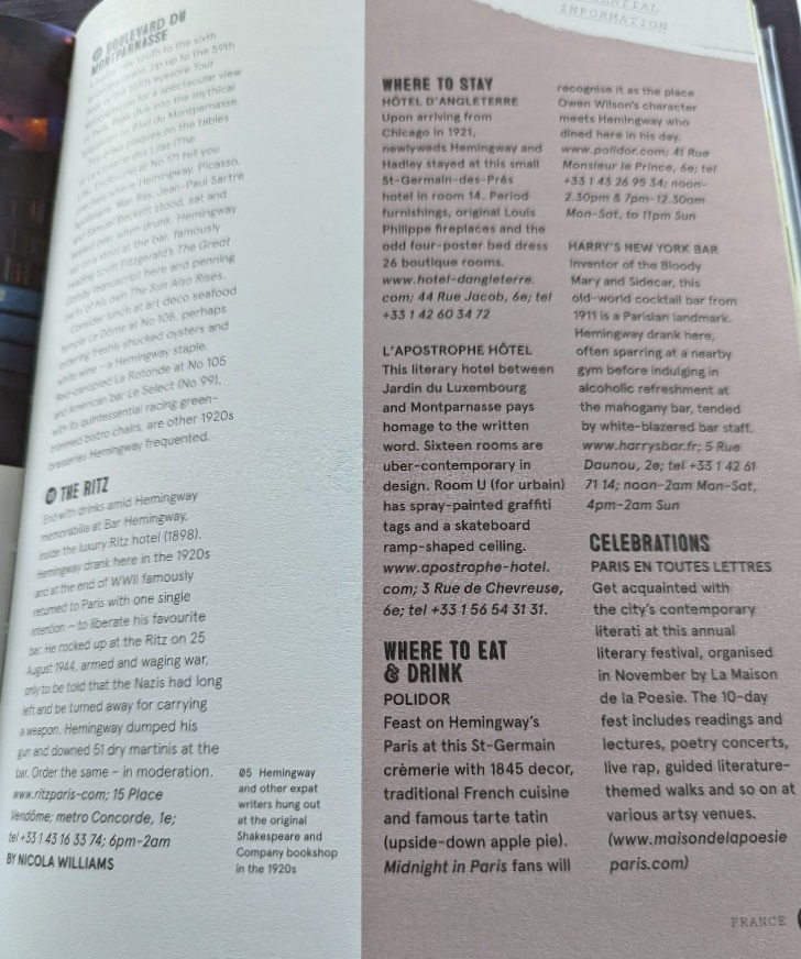 To quote a favorite author: “If you are lucky enough to have lived in Paris as a young man, then wherever you go for the rest of your life, it stays with you, for Paris is a movable feast.” Ernest Hemingway