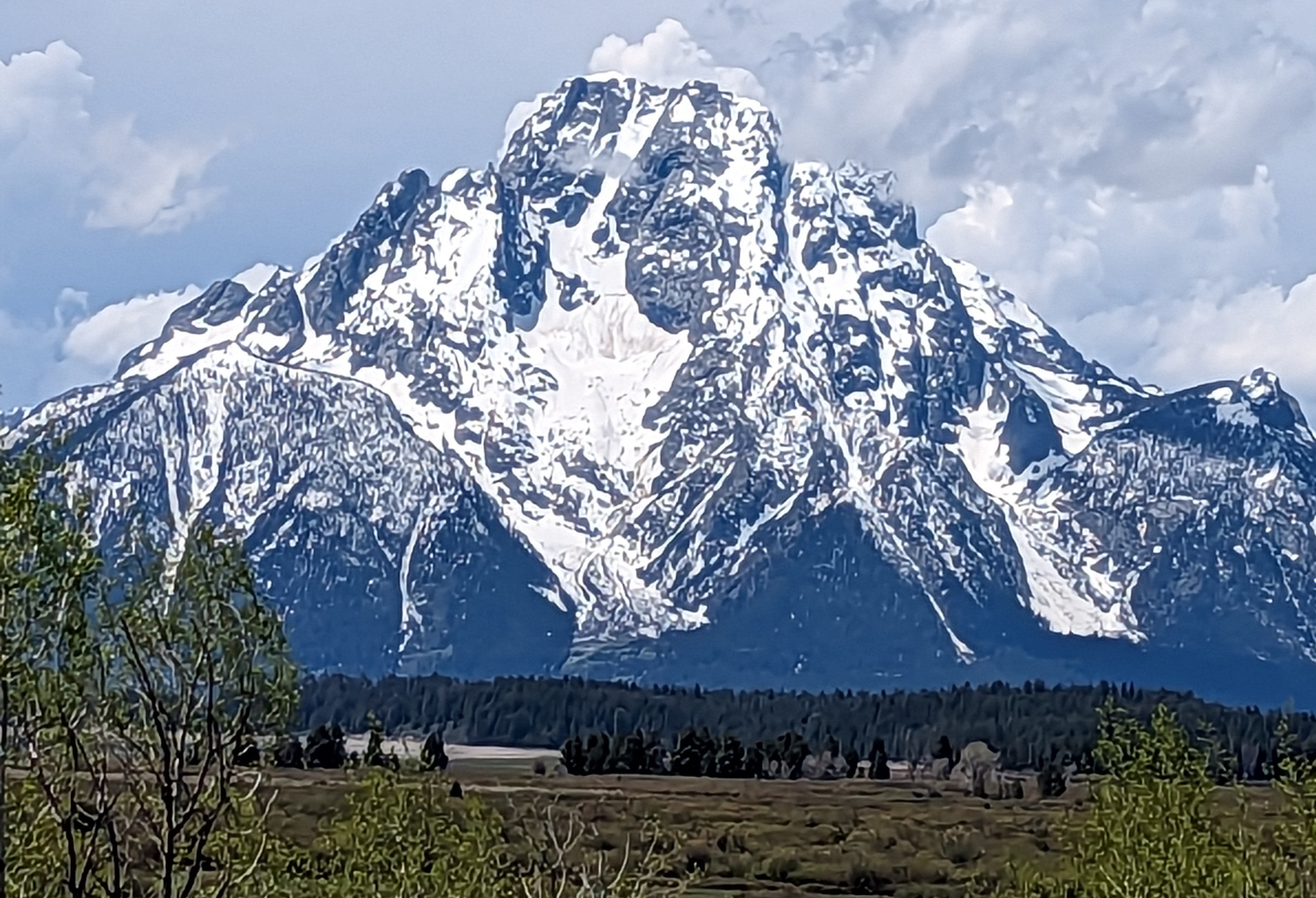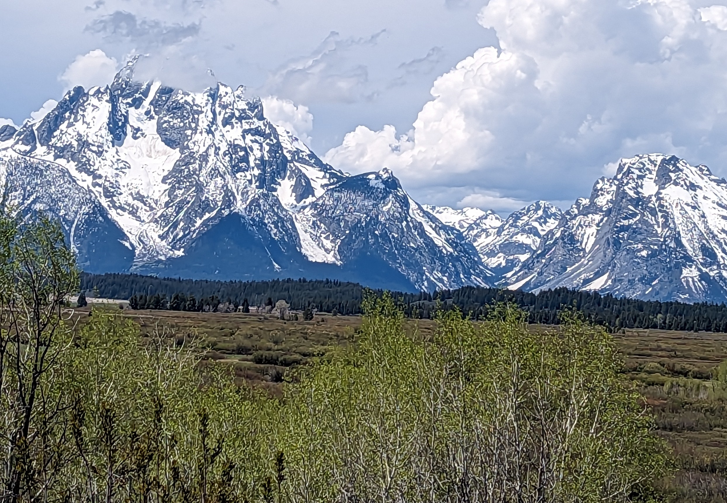 Leaving the park, I traveled via the South Exit, noting that the restaurant at Grant Village was closed but would open Memorial Weekend. The South Exit took me to the gorgeous Grand Teton National Park. It was an easy drive to Jackson, then over the Teton Pass (connecting Wyoming and Idaho, 8,432 feet; very steep, 10% grade but very beautiful) towards Idaho Falls.