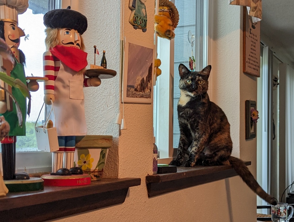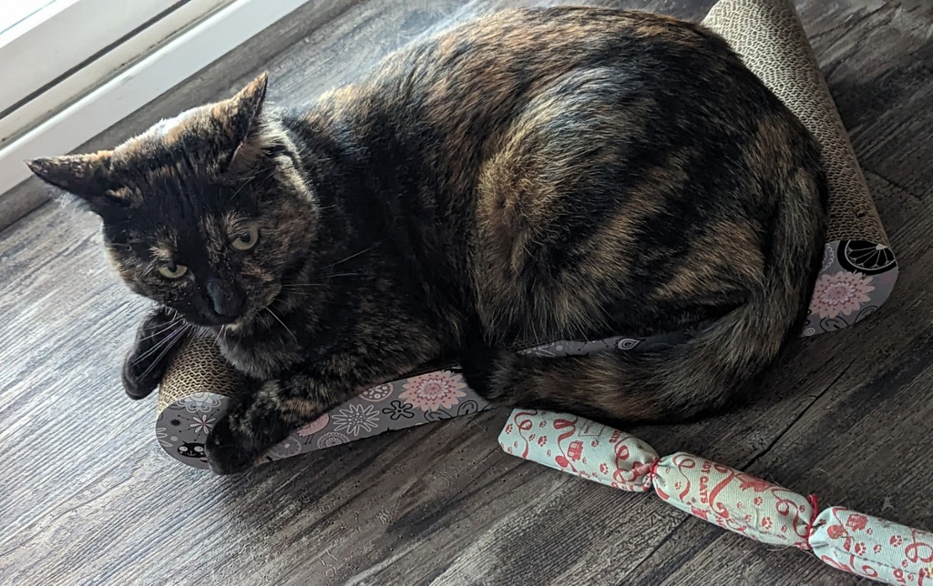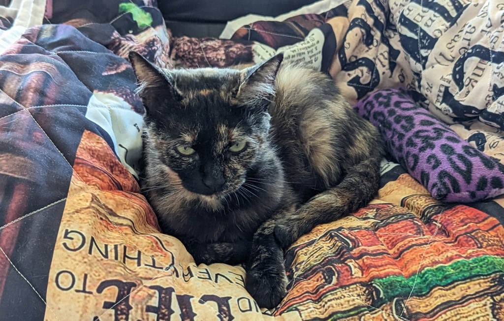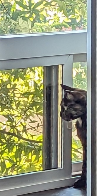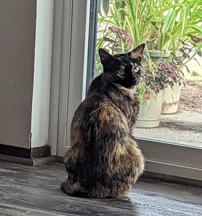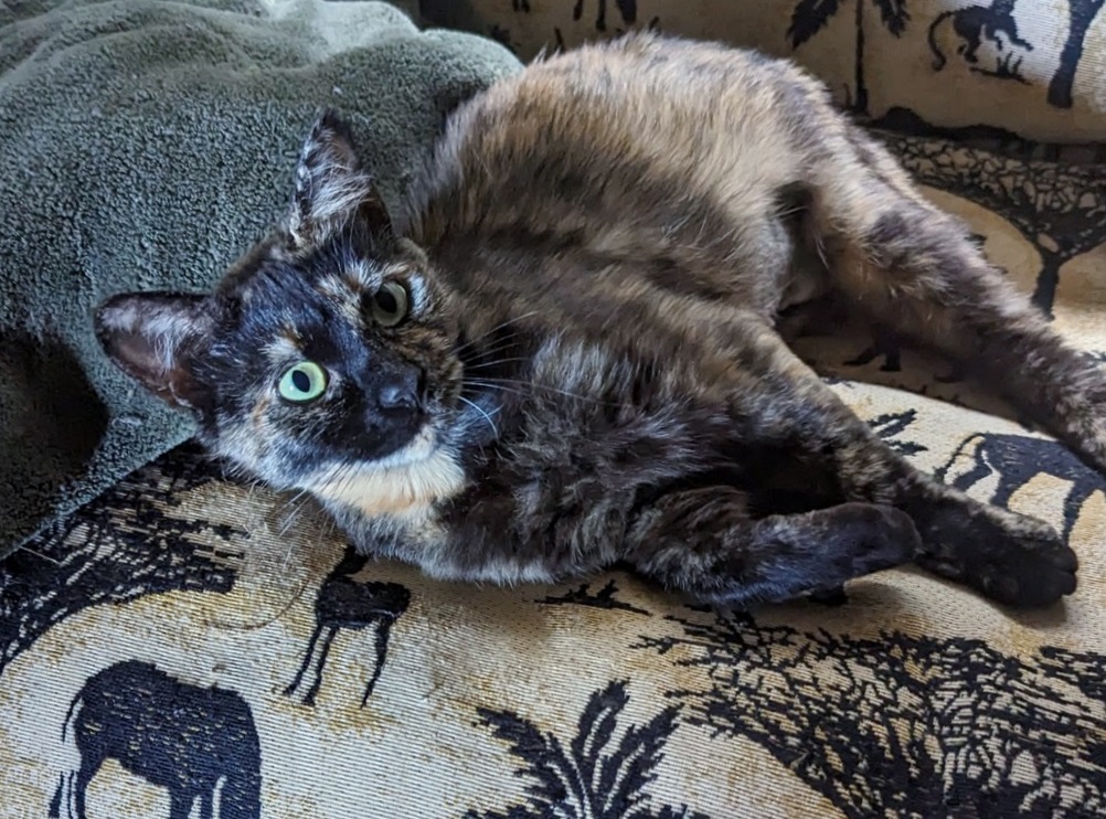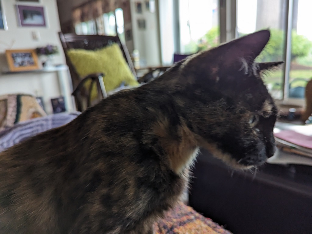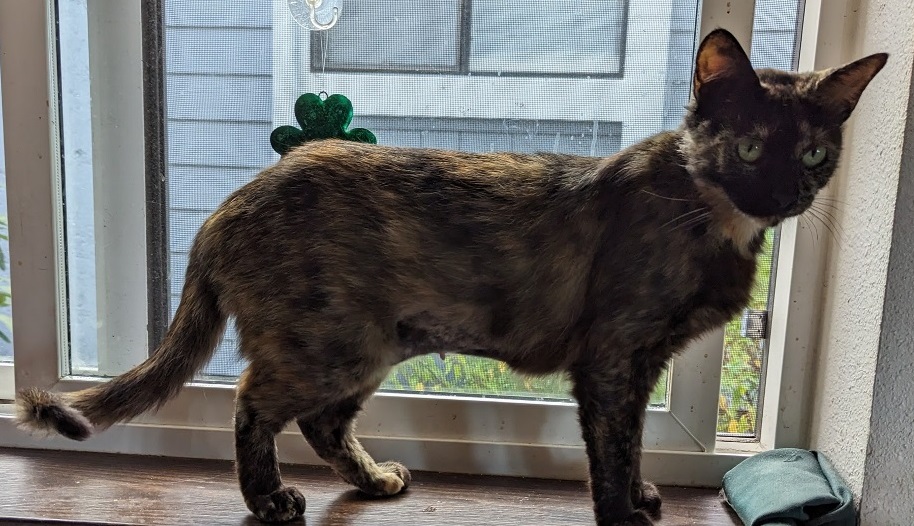 Hurrah ~ Need I say how happy I was. All I know about Sabrina is that she spent two weeks at the Humane Society, is 7 years old (though I wonder — she runs about like a much younger cat!) and not much else.