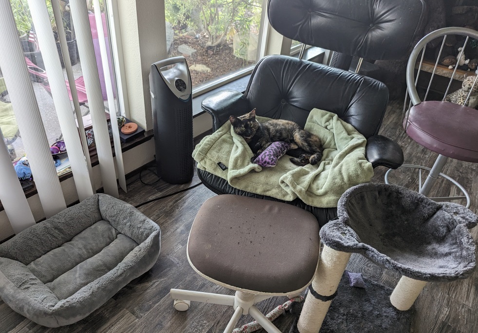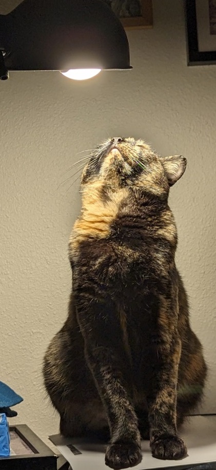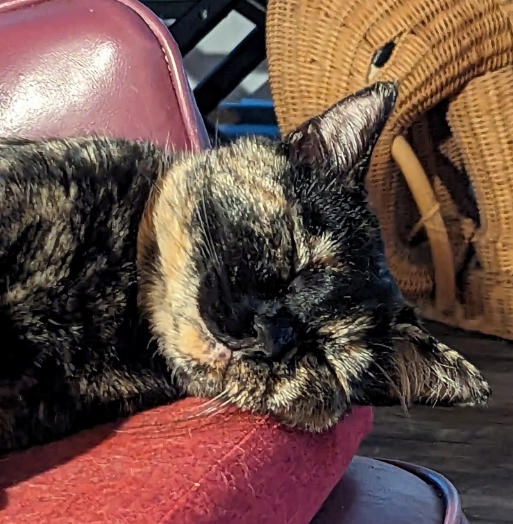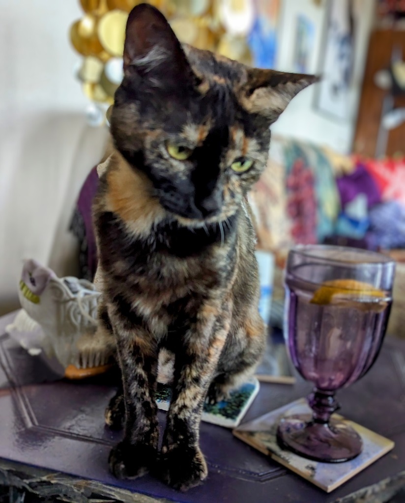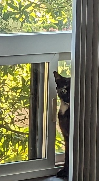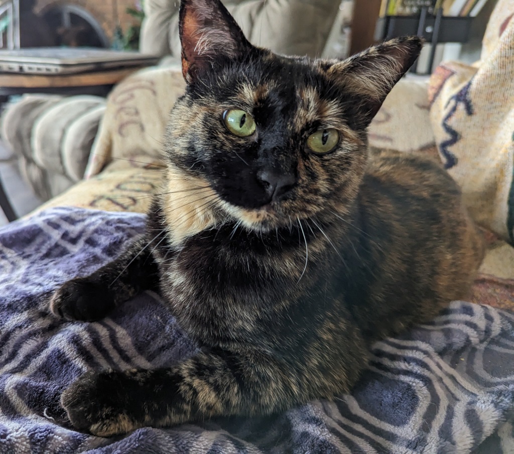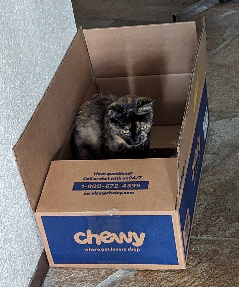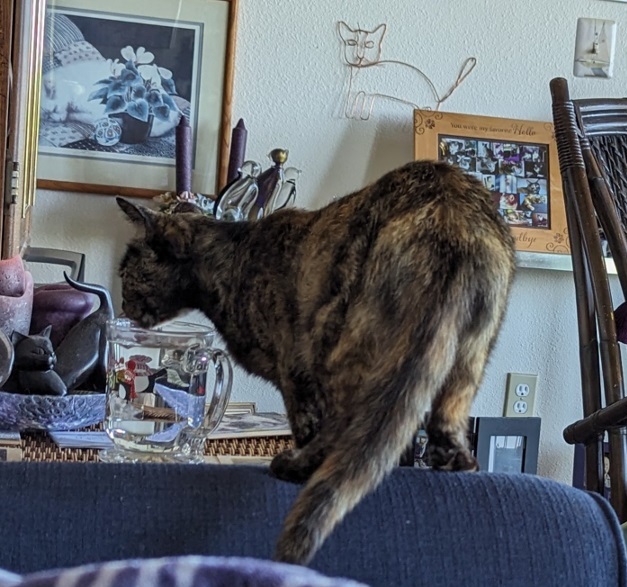 Hurrah ~ Need I say how happy I was. All I know about Sabrina is that she spent two weeks at the Humane Society, is 7 years old (though I wonder — she runs about like a much younger cat!) and not much else.