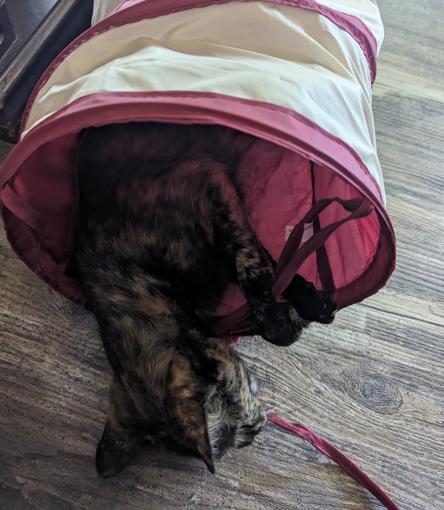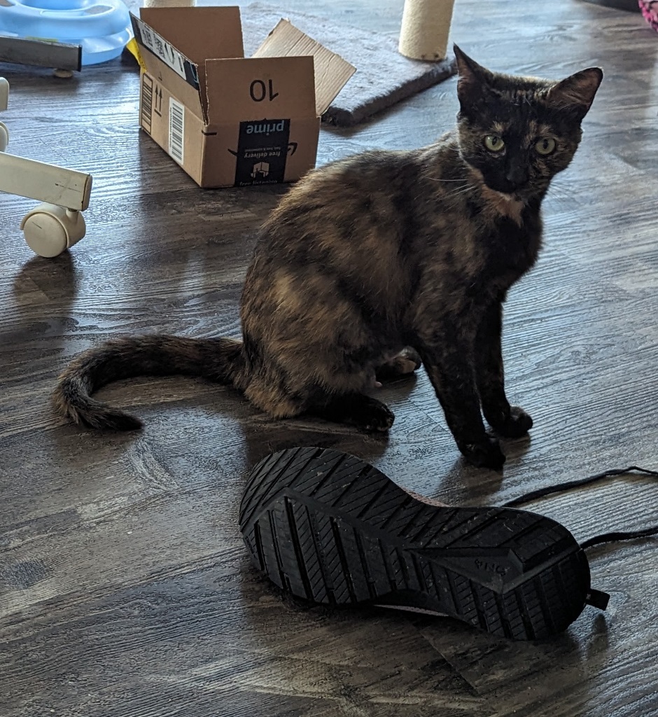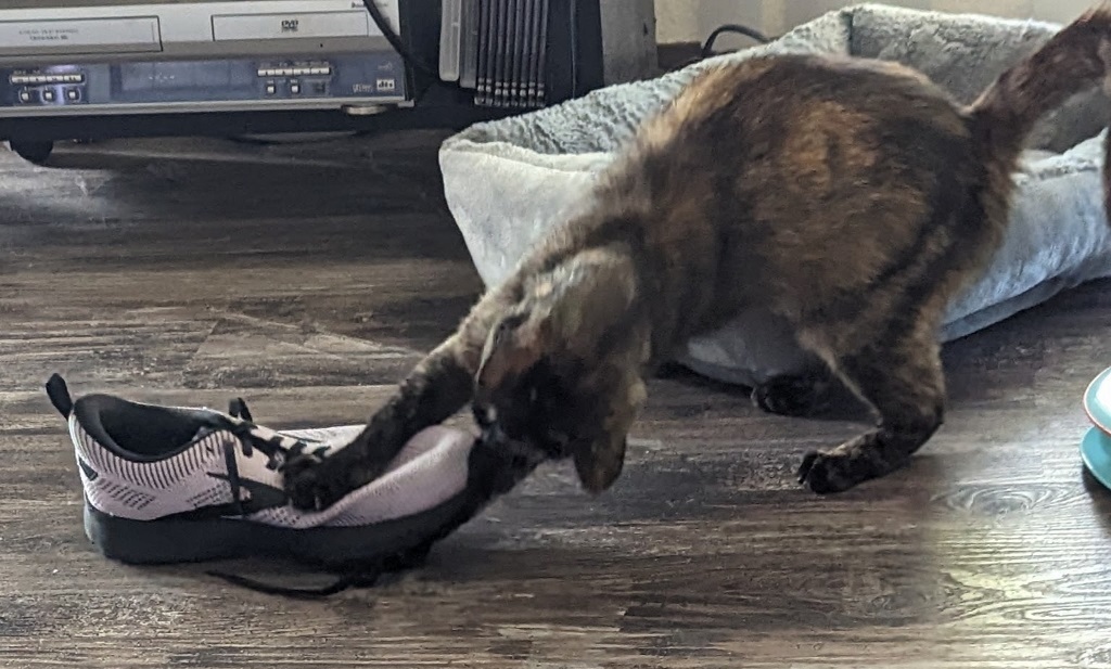 We are having fun getting to know each other …Sabrina likes to race about … 5 AM breakfast (a bit early – will work on that!) … is fascinated by the squirrels and birds … loves shoe laces …and of course, wants to explore every area of 0ur home. Some small barricades work, others don’t! Now, she is napping in the living room as I type this … she is a joy and there will be other posts and photos about playful Sabrina.